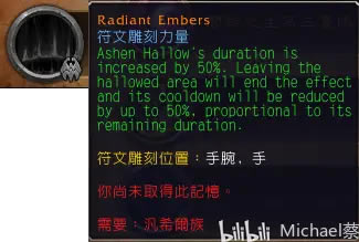 法夜——蔓延转移:从消亡之债获得的力量提高1%,持续时间延长2秒。站在你的消亡之债内时,你产生符文能量的速度提高20%。