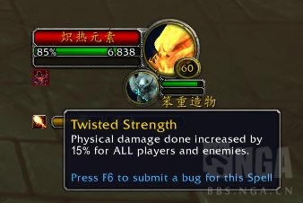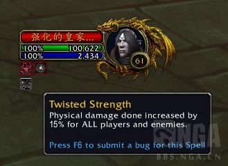 玩家头上并没有显示任何涉及扭曲之力的Buff,不过实际对比平砍数据可见15%物理增伤已实装
