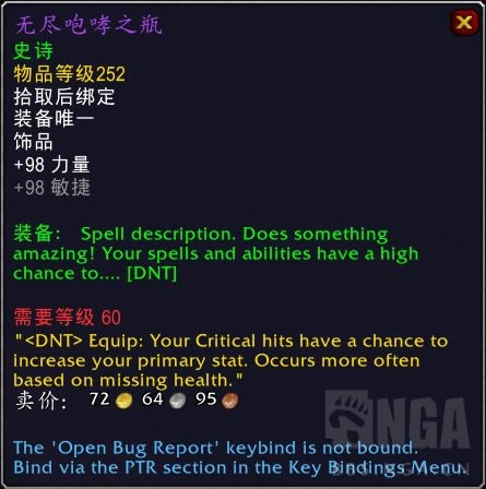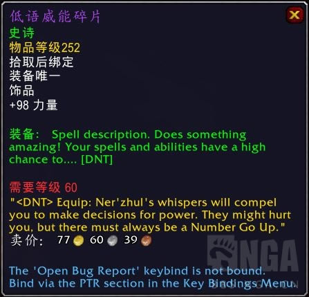 描述:装备:耐奥祖的低语强迫你为获得力量做出抉择,这些抉择可能会伤害你,但一定能使你获得提升。