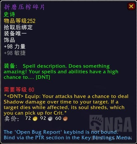 描述:装备:自动攻击有几率对目标造成持续性暗影伤害,如果目标在效果持续期间死亡,其灵魂将被撕裂成碎片,捡起碎片可增加爆击。