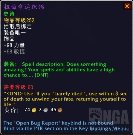 描述:使用:如果你陷入绝境并在 3 秒内死亡,松动的命运将使你复生。