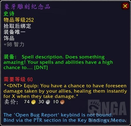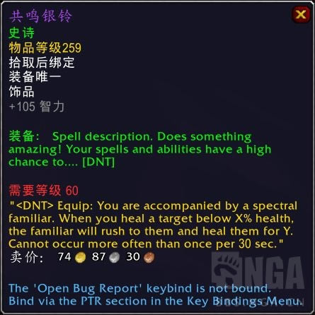 描述:装备:一位幽灵战友跟随你,当你治疗一个生命值低于 X% 的目标时,幽灵战友冲向并治疗他们 Y 点生命值。每 30 秒最多触发一次。