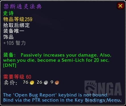 装备:被动增加你的伤害。当你死亡时变为巫妖,持续 20 秒。