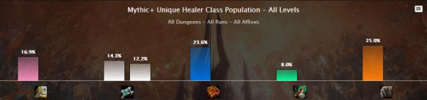 在高层大秘中比较不受欢迎的神牧和奶僧也有着不错的占比。