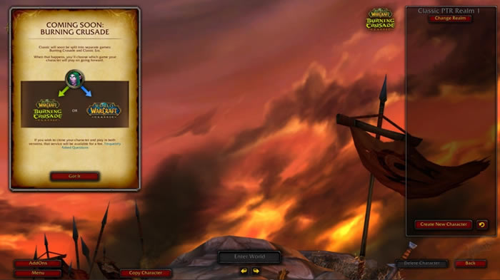 这些内容有助于解释每个玩家都必须做出的决定:是把自己的角色带到燃烧的远征,还是留在60级的服务器上。然而,如果你希望克隆你的角色并在两种类型的服务器上游戏,你可以付费克隆你的角色!