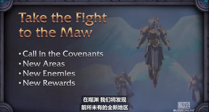 3.展示了新版本中“统御之链”安度因的后续进展,这个大型资料片将会主要围绕典狱长军团的首次进攻和他的计划展开剧情,首当其冲的是晋升堡垒和法夜势力,玩家将会在该版本中协助四大盟约抵抗典狱长的攻击。