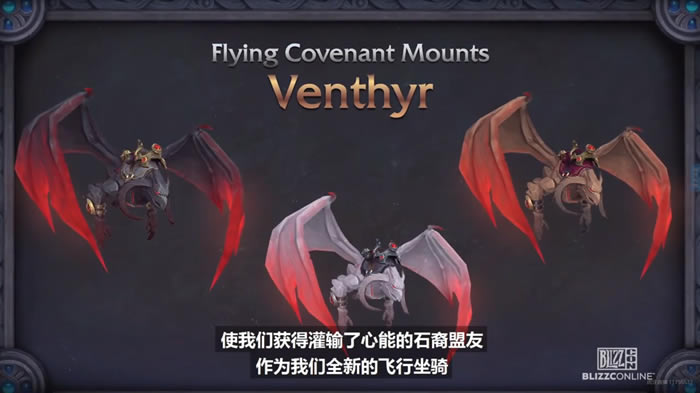 10.盟约的故事章节将自动为解锁飞行,完成飞行解锁还将获得对应的盟约飞行坐骑,每种盟约奖励的飞行坐骑各不相同,比如法夜的狼蚺,通灵的巨型尸蝇、温希尔的石裔、格里恩的飞行心能百夫长;盟约还会推出一套全新的幻化用盟约护甲,该类的幻化套装是无甲限制,在主题和元素体现上都很符合四大盟约的特点和属性。