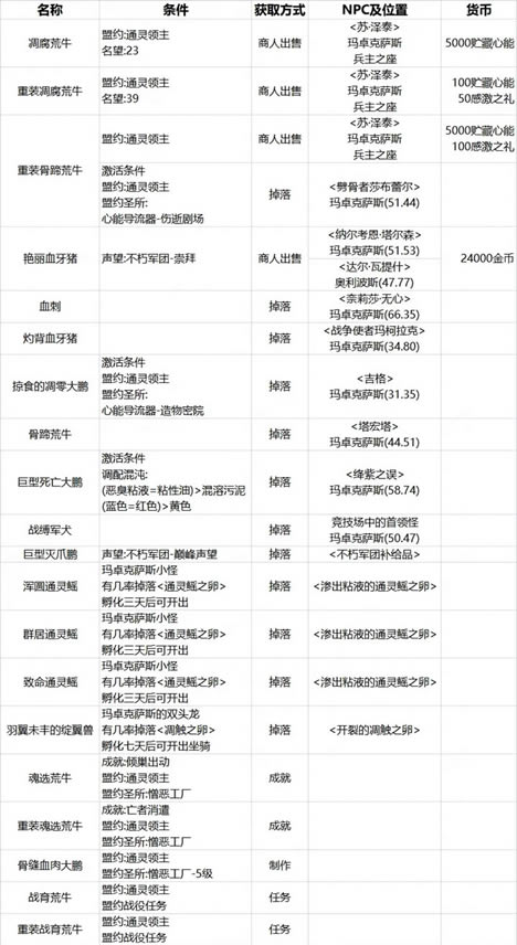 限于篇幅, 部分坐骑获取方法还请网上搜索