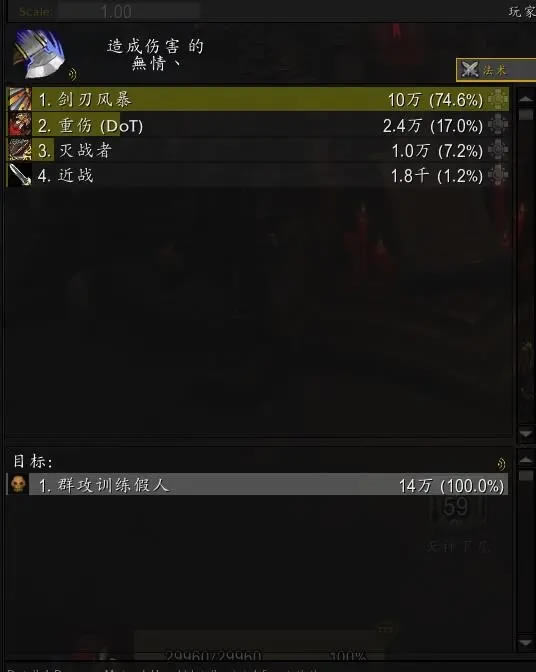 本测试仅应用于中层大秘境,约7-10层,也是UP常打的层数(太菜了还有风气导致更高层没有太多的实际体验),毕竟高层的情况选择,顺劈斩更优于灭战,这层数内的小怪更容易融化,需要抢伤害,在其他众多AOE爆发更高的职业手底下能抢到更多的伤害,是保证你的DPS不落后的唯一途径,且此类层数,也是绝大多数人刷装备,集合石内选择的一个比较多的层数,也不需要像高层需要规划好每个人的爆发,毕竟野队,谁管你,你也不必要管谁(当然有时候看到那谁爆发交了,下一波你要有爆发可就嗨起来了)。