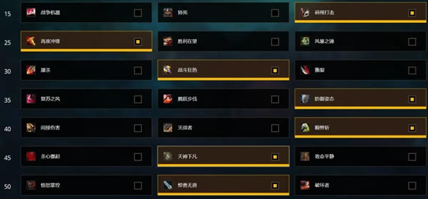 倒数第二层,这个选择其实也是针对“温西尔”盟约的,如果你选了“温西尔”的话就点“致命平静”,没选的话点“天神下凡”。“杀心骤起”就算了,虽然之前武器战经常点这个天赋,但这是建立在“愤怒掌握+杀心骤起”前提下的,版本初期这样的套路收益还不够高,所以放弃。