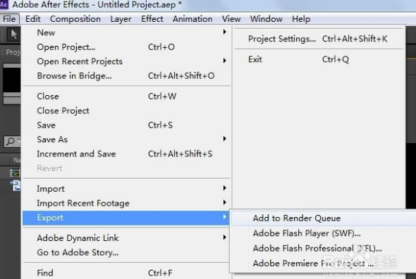1、在视频做好之后,我们需要导出视频,选择左上方的文件,然后依次选择选择导出--->添加到渲染序列相选项。