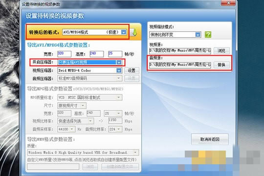 3、支持将各主流视频进行转换,AVI格式允许任您选择各种系统音频和视频压缩器,包括Divx等MPEG4视频压缩器;MPG格式支持应用于家庭影碟机的VCD/SVCD/DVD之NTSC/PAL制式的转换或自定义MPG格式;WMV格式允许用户选择各种适应本机观看、各种网络在线传输观看、PDA观看等不同质量级别的转换画面并允许您选择自己定制的WMV转换参数文件;RM/RMVB格式支持各种网络带宽应用、手机移动设备应用等不同质量级别视频的导出。视频转换还支持不同音频文件和视频文件的混合合成转换,切割转换、驳接转换等。允许为各导出格式选择屏幕缩放方法,并支持批量转换处理,甚至还可以允许您在最终视频的具体位置打上自己半透明的个性显示图片。