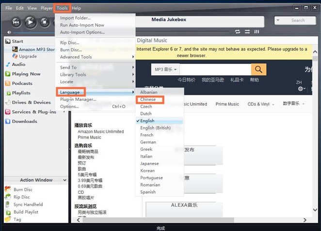 Media Jukebox安装完成,打开软件,进入主界面,点击【Tools】——【Language】——【Chinese】,