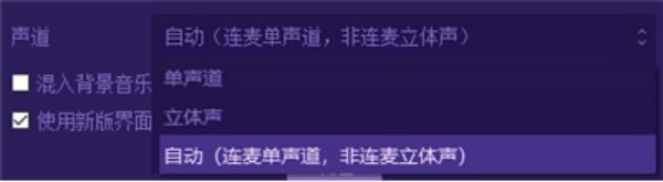 直播助手支持声道选择,如果出现声道问题,请视依次尝试合适设置,如果没有问题,请保持默认选项。