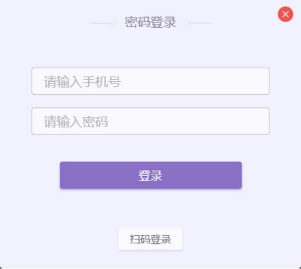 点击上图下方密码登录按钮,即可通过手机号、邮箱及密码登录。