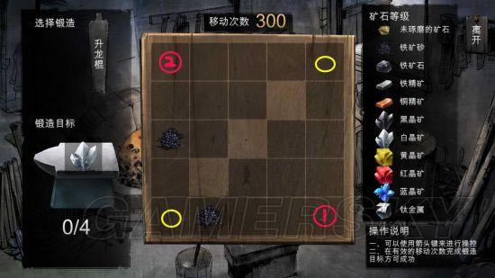 选1号点,但是要时不时关注2号点,因为需求4个白晶矿(这已经是打铁满100的情况),当你在1号点完成1个以后,1号点很可能已经被杂矿占据,这时就该启用2号点,也就是说要同时注意两个点的情况,谨慎使用↓↑键。而黄圈不可选,当完成1个时很可能出现下图这样的情况导致GG。