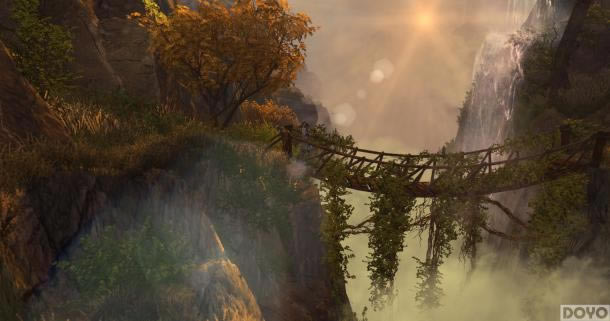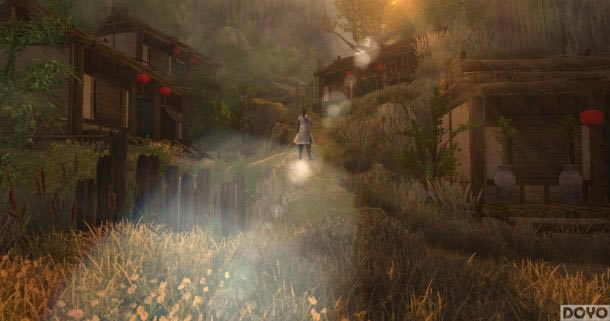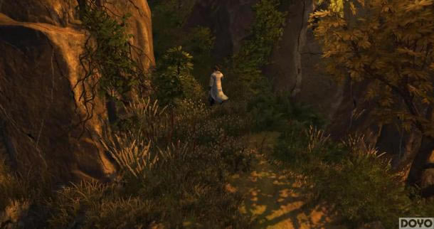 也许青年时期的大师兄更加英姿飒爽些,至少在穿着方面让笔者觉得会更加有品位,整体增添了不少的活力。视频中以大师兄为第一角度在整个逍遥谷中进行穿梭游览,通过他的“带领”,大家可以一览黄昏下整个山谷中的美景。