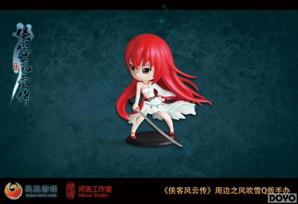 风吹雪:东瀛女武士,隶属于一个名为“天意城”的杀手组织之中,代号为:花。在游戏中与主角会有许多精彩的对手戏。所以,原画师在手办设定时,抓取高冷的眼神和帅气的身姿以表现其杀手的特点,虽然是一款Q版手办,依旧力求表现女性性感的一面。而该款Q版手办将会出现在《侠客风云传》豪华版收藏礼盒之中,并作为重头戏之一,极具收藏意义。