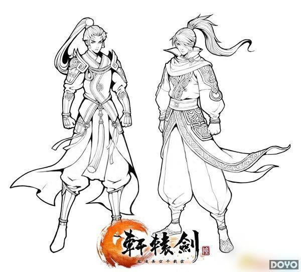 图2:《轩辕剑6》凤天凌未上色时装线稿,猜猜他最后穿上哪一套?