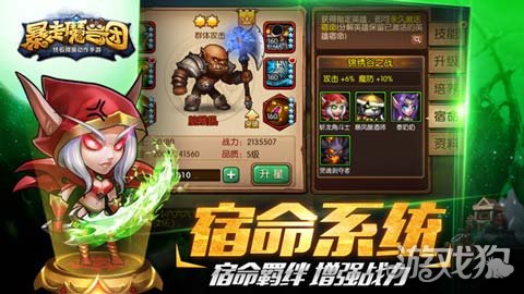 《暴走魔兽团》的英雄们都有着属于自己的传说,当命中的牵绊让我们相遇时,产生联系的英雄们就将迸发出无与伦比的力量。S、A+、A品质的英雄,都有自己的宿命。集齐宿命中的特定英雄,就可以激活宿命系统,获得攻击、生命、物防,魔防四大属性的加成,英雄的战斗力将得到大幅提升,为你的战队再添战力!