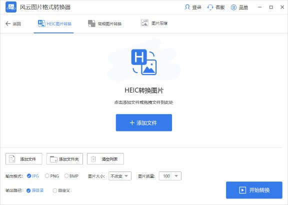 打开客户端,点击添加图片,旋转HEIC格式的文件后 即可进行快速转换。
