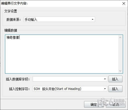 首先添加单行文字“神奇像素”,点击左侧“单行文字”,然后在透明水印编辑区域中任意位置点击鼠标左键,默认弹出文字输入框,输入想要修改的文字内容,点击确定即可完成修改。如图: