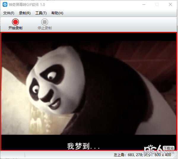 1. 打开软件之后,拖动软件界面使得红色框完全框住你想录制的区域,如图: