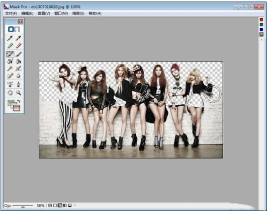 4、下面我们先做一些周边工作以便于我们更好的抠出图像。使用笔刷把图像周边先清除一下,注意是右边的普通笔刷不是魔术笔刷。刷错了没关系Mask pro允许你无数次Undo,只要按Ctrl+Z就可以撤销操作。