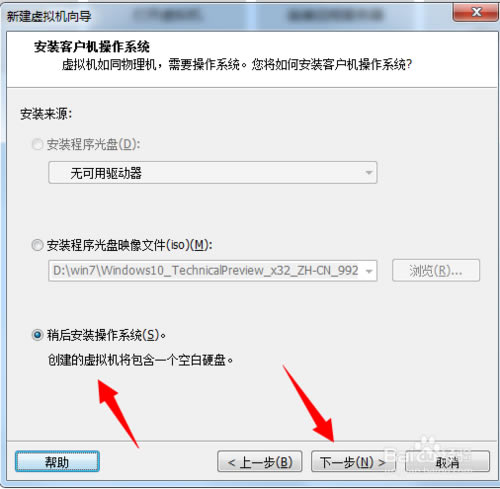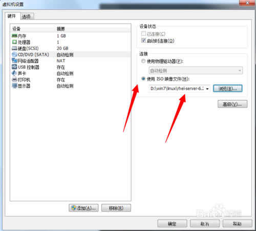 7、选择【使用ISO镜像文件】,然后将我们的Linux镜像添加