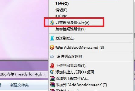 3、鼠标右键文件夹中的的AddBootMenu.cmd文件,选择以管理员身份运行。