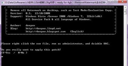 4、所有SP版本的Vista、Windows 7 应该都支持。本程序只完成修改文件的工作,请自行用bcdedit编辑启动菜单加载新的内核文件。你可以运行AddBootMenu、cmd 自动添加启动菜单的脚本,请右键点脚本文件,选择以管理员身份运行。