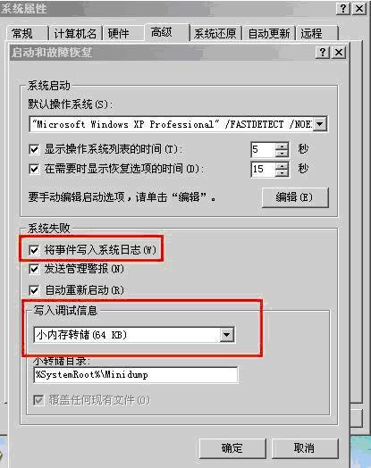 windows发生蓝屏时,如果系统属性有下图设置,windows会自动生成minidump文件,该文件记录蓝屏生成代码和导致蓝屏出现的进程,通过windebug的软件来分析这个minidump文件。我们就可以找到蓝屏出错的原因了。这个文件保存目录是C:\windows\minidump文件夹,一般生成的名字为:Mini040108-01.dmp。
