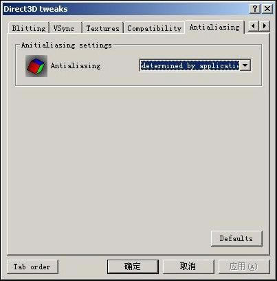 下面我们回到主界面,在弹出来的工具栏中选择“DirectDraw and Direct3D settings”图标。该选项包括多个子面版:其中包括了Mipmapping纹理映射、Depth buffering深度缓冲、Blitting位图传送、VSync画面重绘与刷新同步、Textures纹理、Compatibility兼容性、Antialiasing抗锯齿等各方面的调节。这些项目的调节功能会对显示效果和显示性能造成直接影响,初级用户不宜过多尝试。