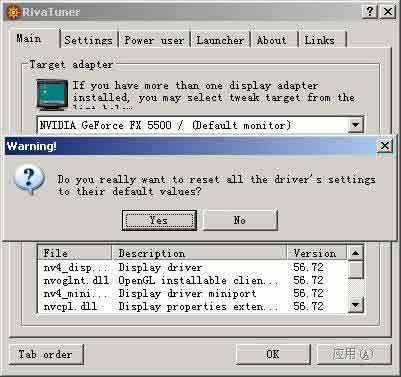 Driver sttings最后一个图标按钮是“Restar all the dirver's settings to their default values”,一个简单面重要的功能——驱动设置复位。当了设置出现问题时,我们可利用它把驱动设置选项回复到原来的状态,还原驱动设置的默认值。