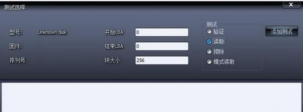 5、这里可以选择Verify校验、Read读取、Erase擦除等项,因为我们只是扫描,因此就按默认的Read项,点击Add Test按钮,开始全盘扫描。