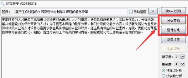 3、点击“进行对比”,将切割的语句用百度进行搜索,然后返回搜索结果进行分析。